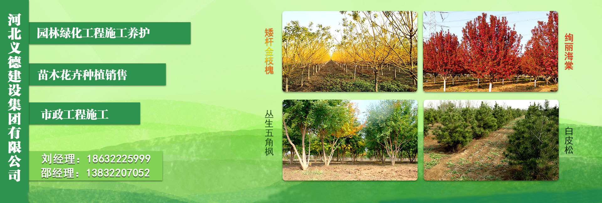 我公司本著重合同,守信譽(yù),互惠互利,誠信第一的態(tài)度,踏實(shí)干事業(yè),契約必踐行的園林宗旨,逐步發(fā)展為今天集園林綠化設(shè)計(jì)及施工、市政工程施工、苗木花卉種植及銷售等綜合性園林綠化行業(yè)公司。